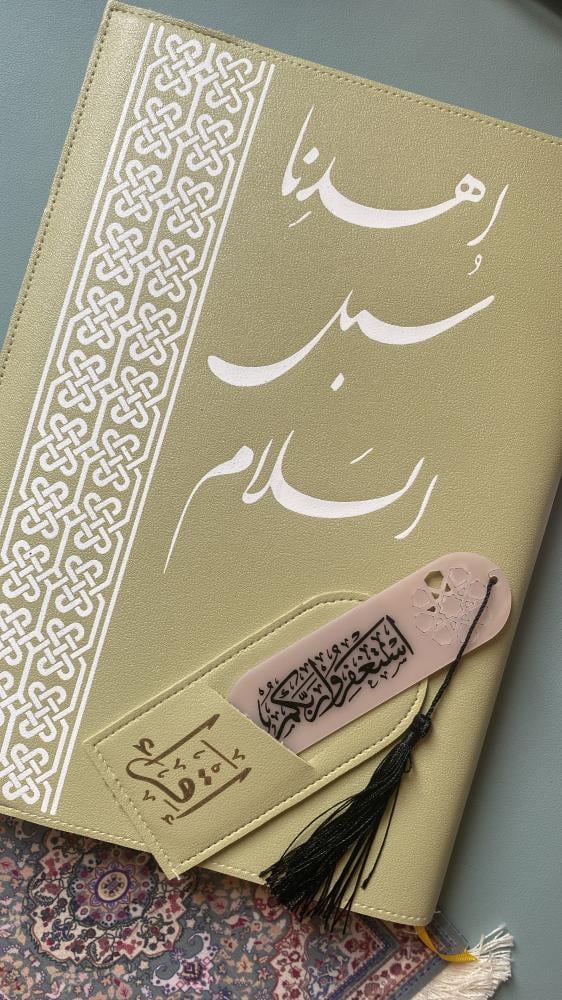يأتي مع غلاف جلدي + فاصل قرآن أكريلك متوفر بـ٣ ألوان :