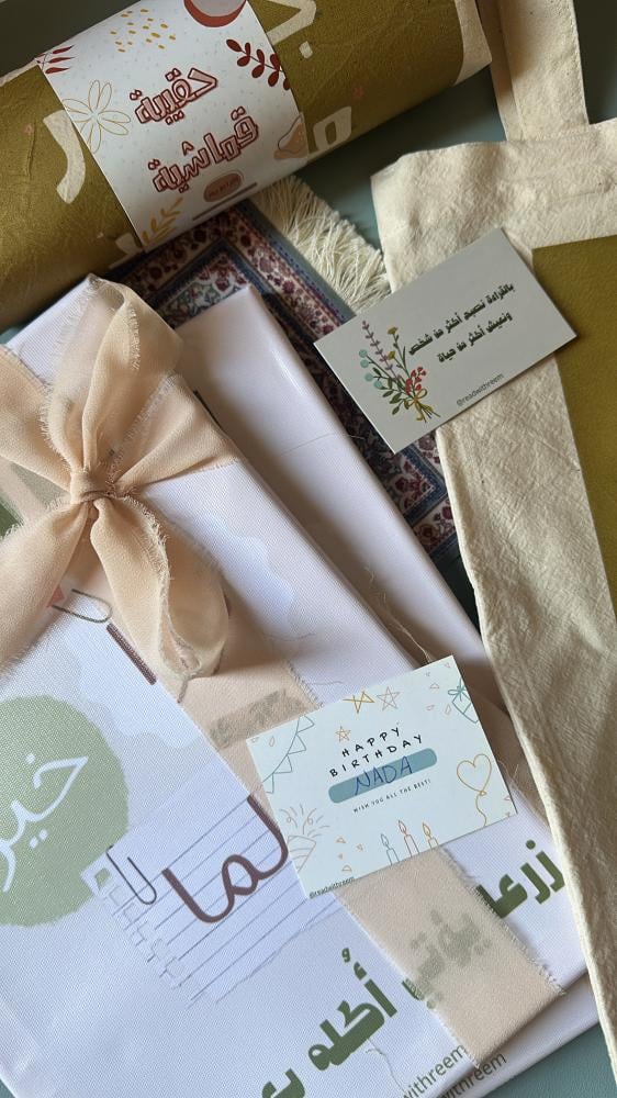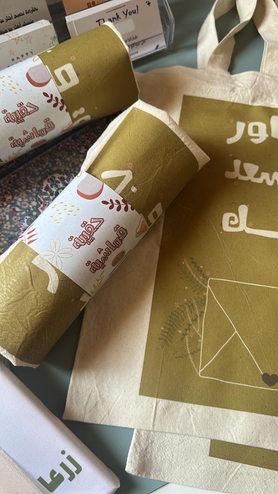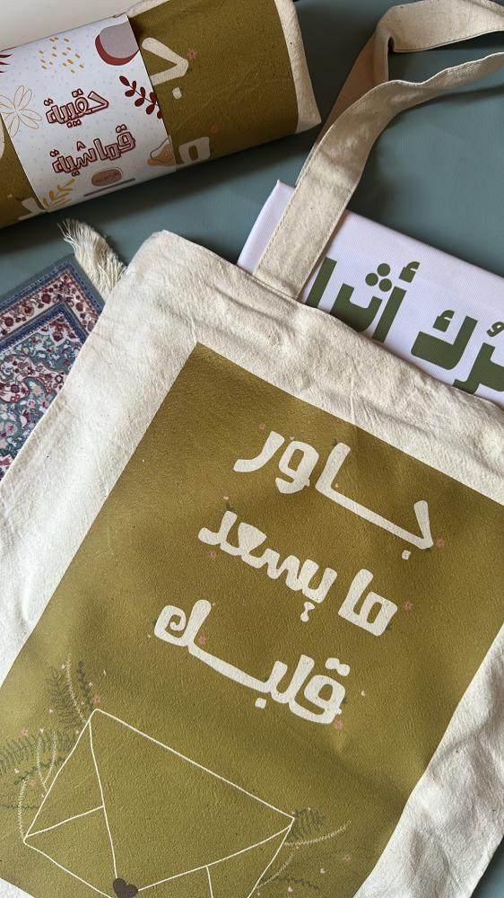 مع حقيبة قماشية بعبارة ( جاور مايسعد قلبك ) 🌻